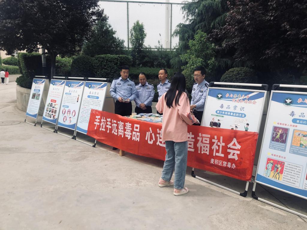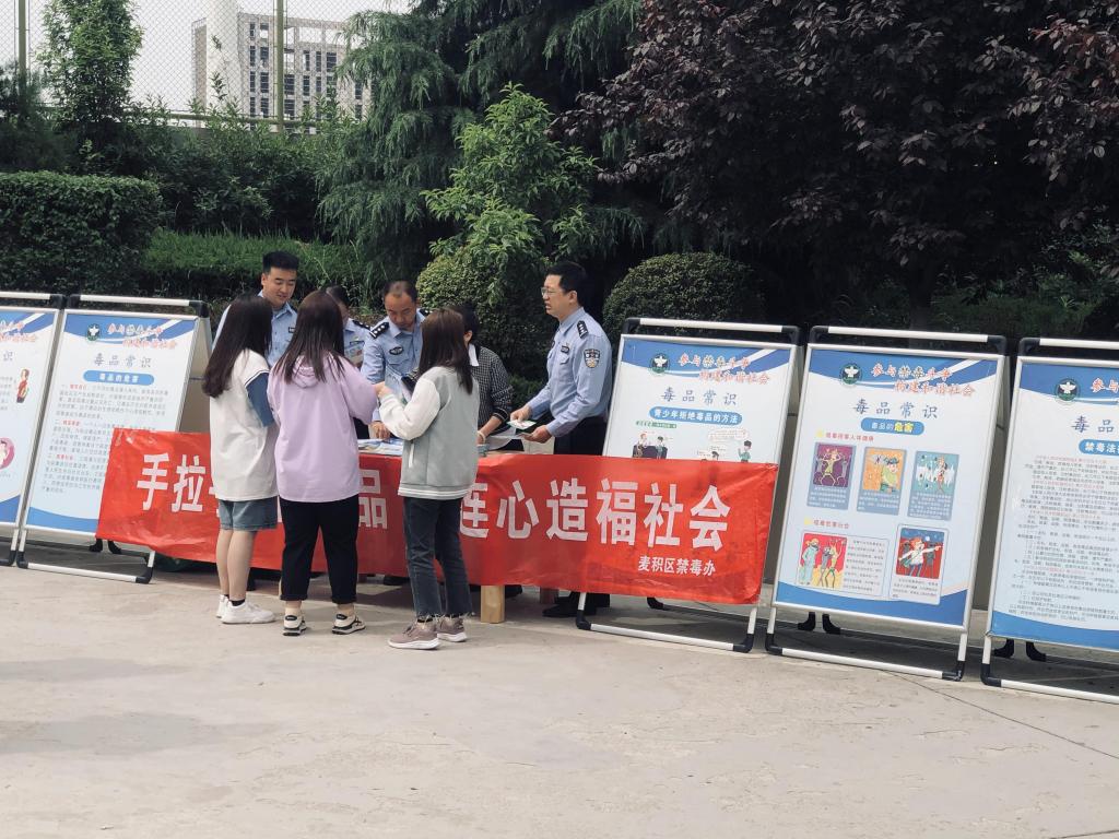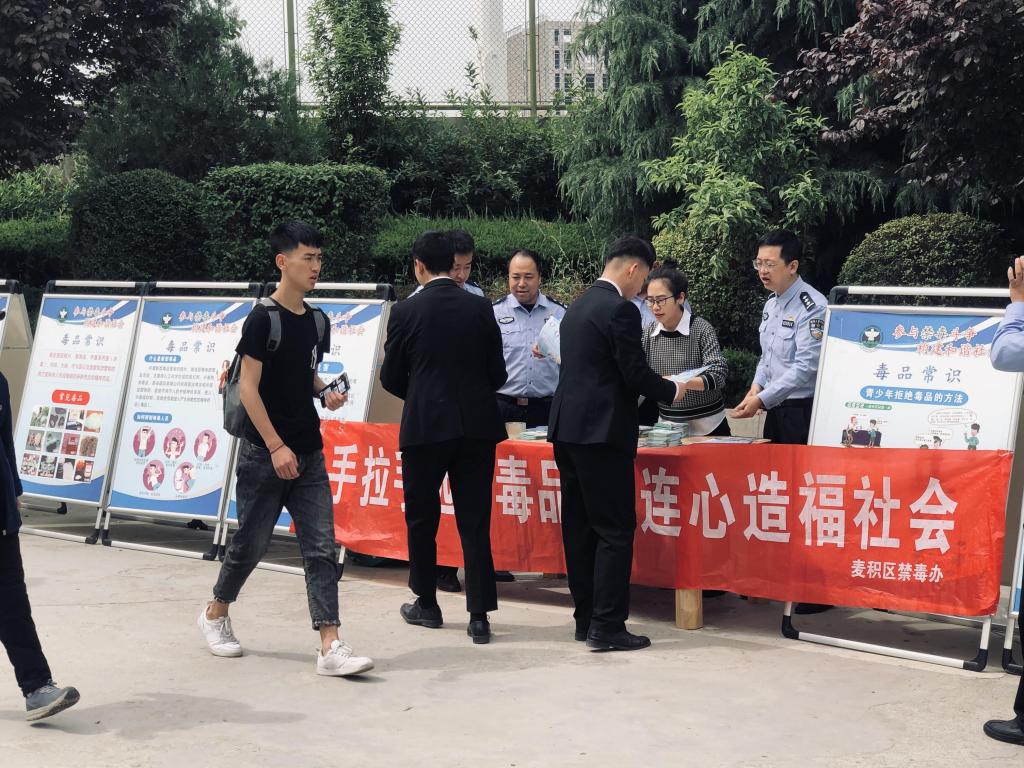 为进一步增强我校师生防毒,拒毒意识,营造一个文明进化的校园环境,5月20日上午,保卫处联系麦积区禁毒办和花牛派出所民警进校进行“手拉手远离毒品,心连心造福社会”禁毒宣传教育活动。