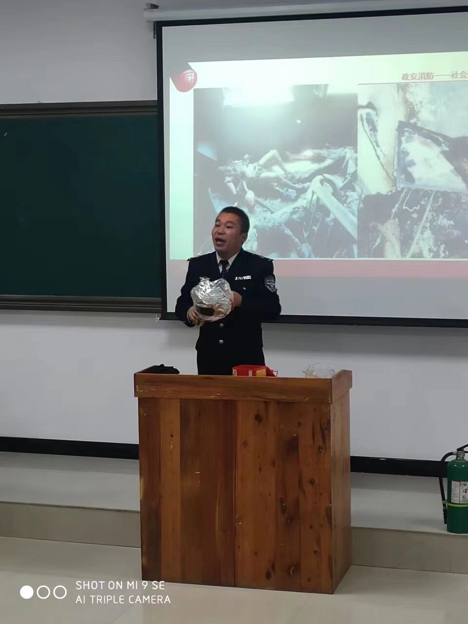 培训会上,政安消防培训教育中心王教官以近期发生的火灾为例,细致地指出了现实生活中存在的火灾隐患,引起广大从业人员对消防安全的重视,敲响了“消防安全”警钟。同时,王教官还结合多起重大火灾事件,讲解逃生自救的注意事项,强调学会报警的四个因素,不当生命安全的“盲人”,并现场演示了灭火器、消毒面具等逃生工具的正确使用方法,有效地提升了从业人员自防自救和处置突发事件的能力,培训人员纷纷表示受益匪浅。