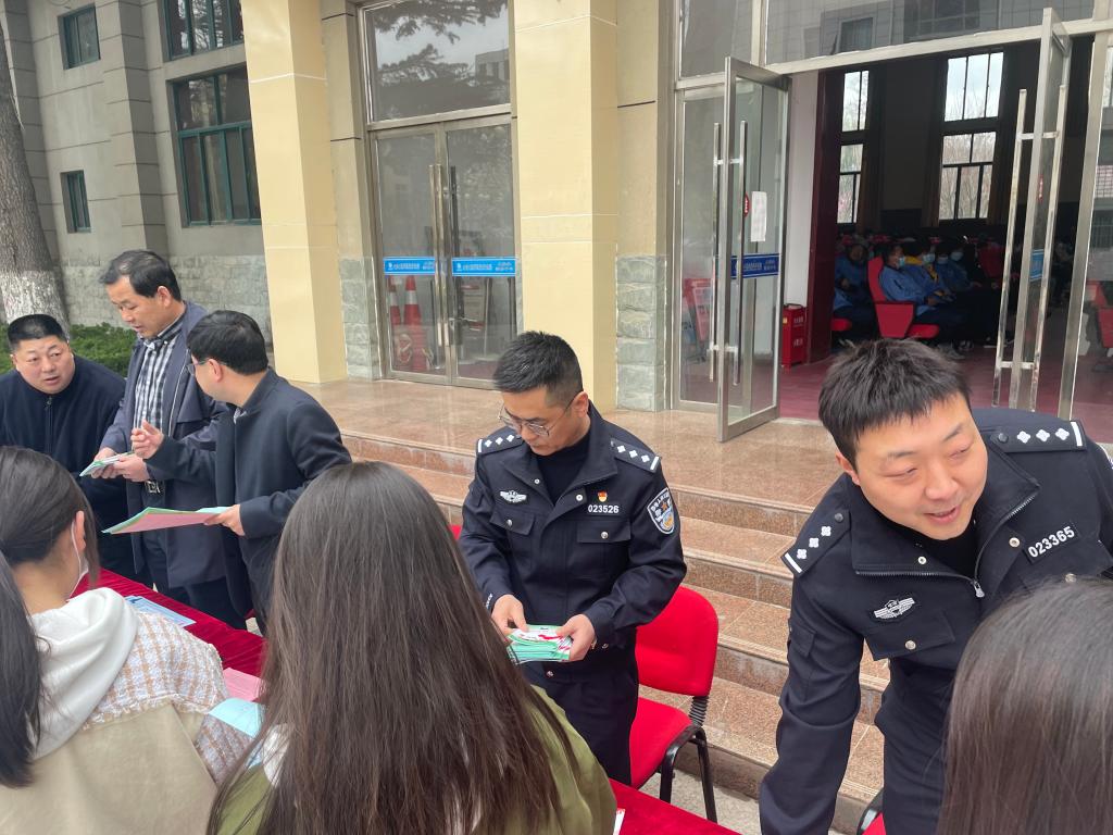 为进一步加强学校师生禁毒、反诈意识,深化禁毒和防范电信网络诈骗宣传教育工作,促进校园安全稳定,3月24日,花牛派出所民警来我校开展禁毒、反诈宣传活动。副院长曹惠清,保卫处、学工处相关人员参与活动。